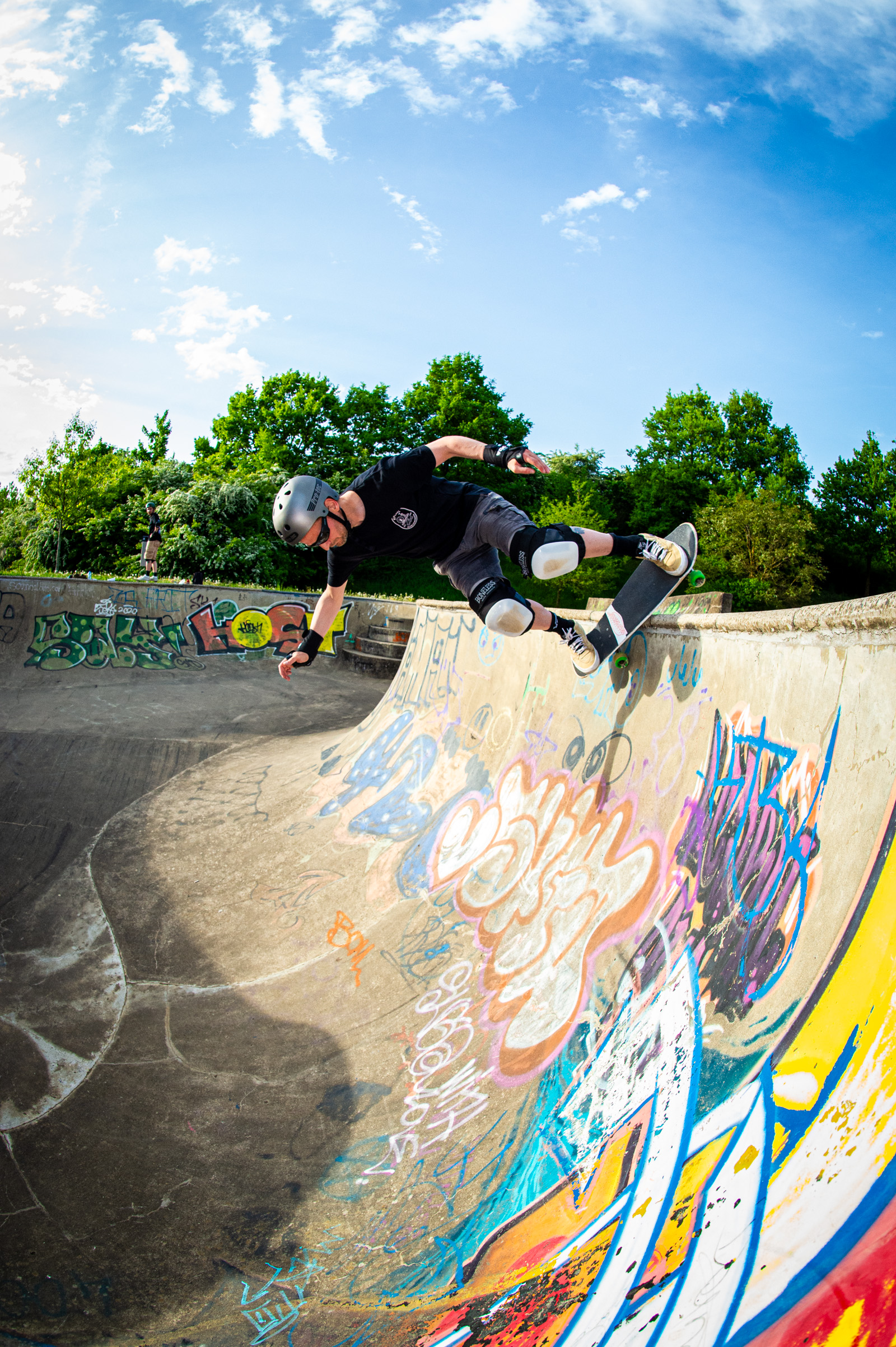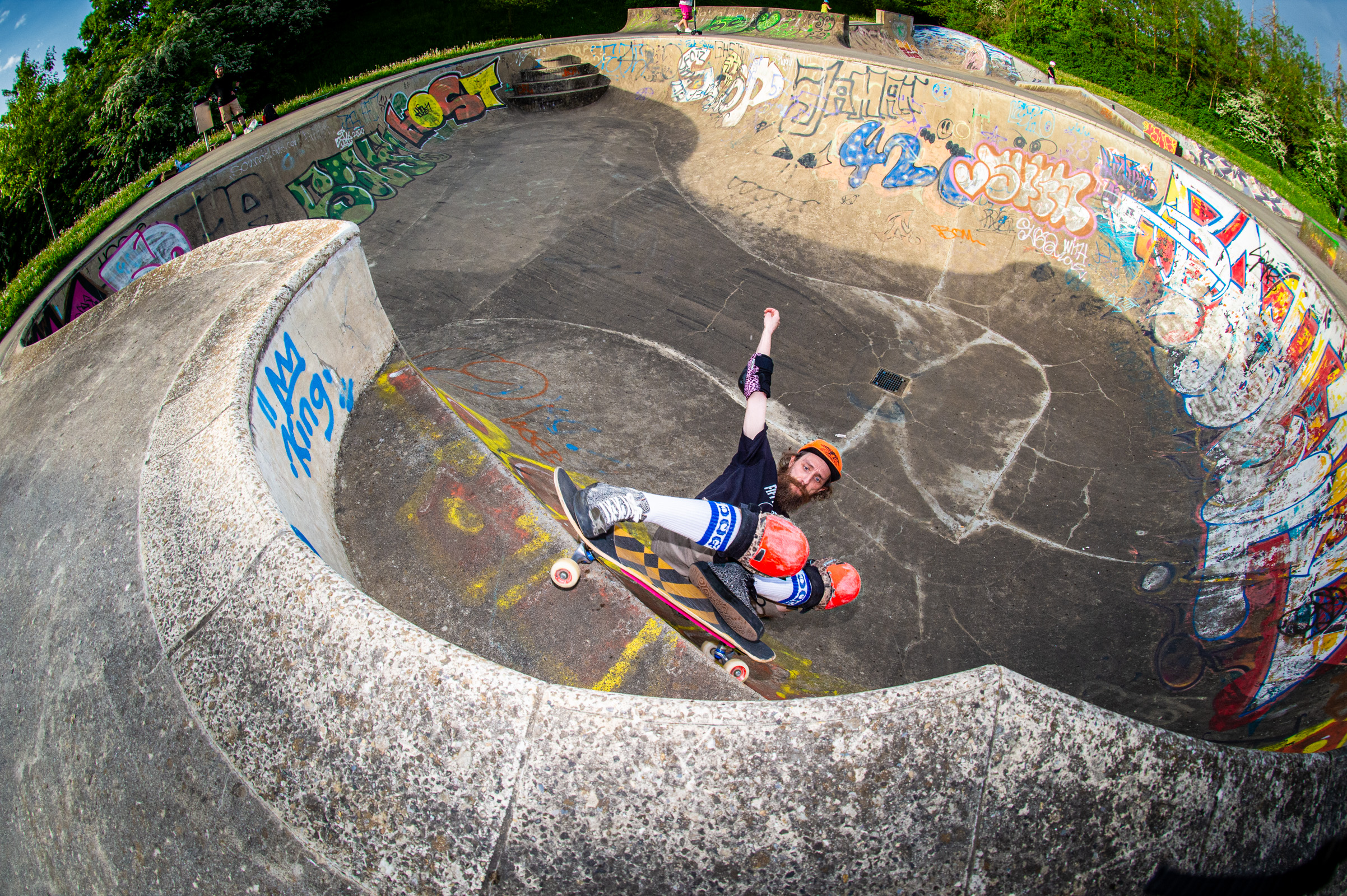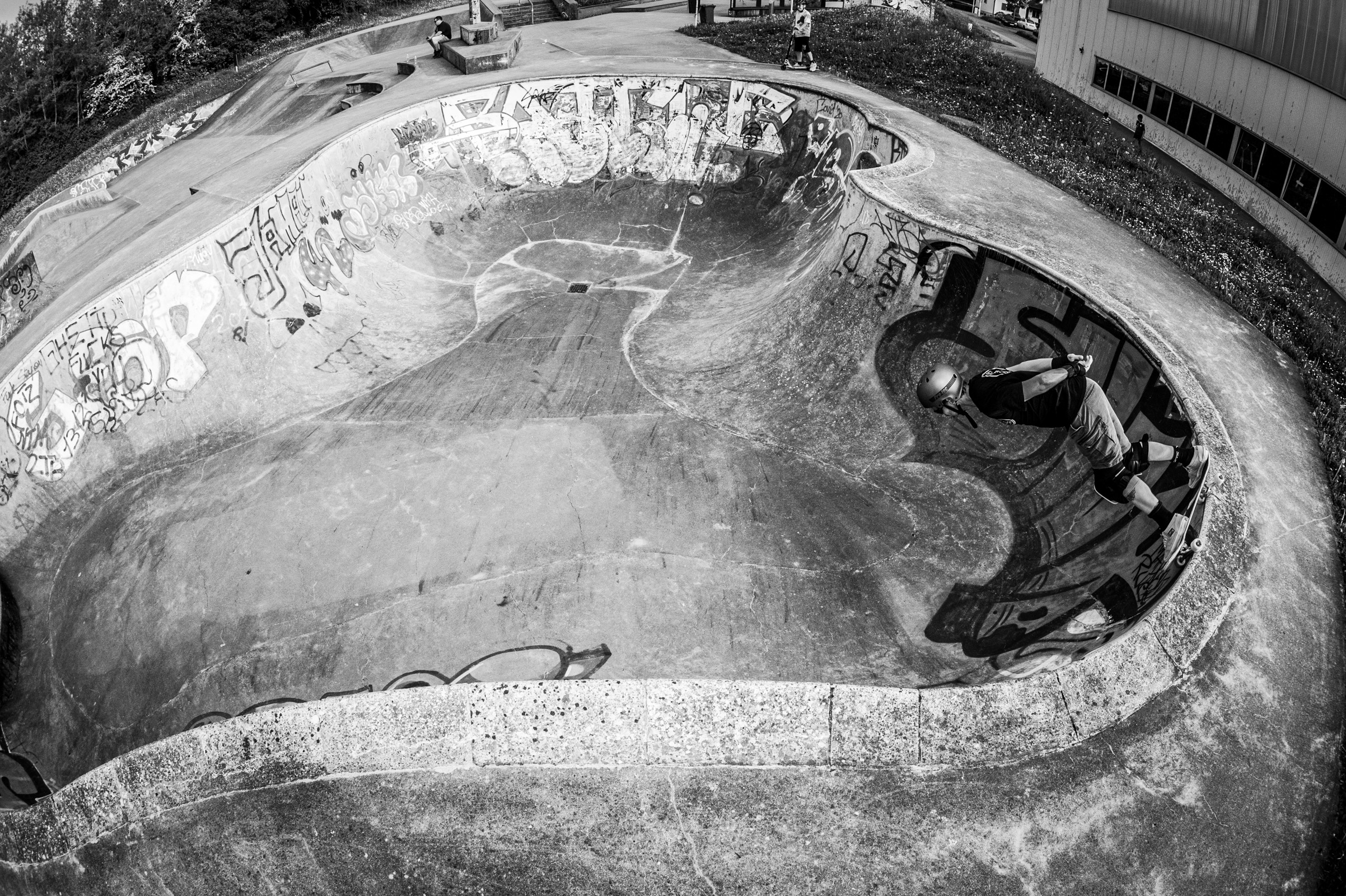 Enter Joe Logelin, new to the cult of pool worship, and what better place to baptize him than Schifflange—Luxembourg’s beast of a bowl with vert for days and no mercy in sight. That thing still echoes with my first backyard pool drop-in from 20 years ago. It bit me back then, and it still growls.