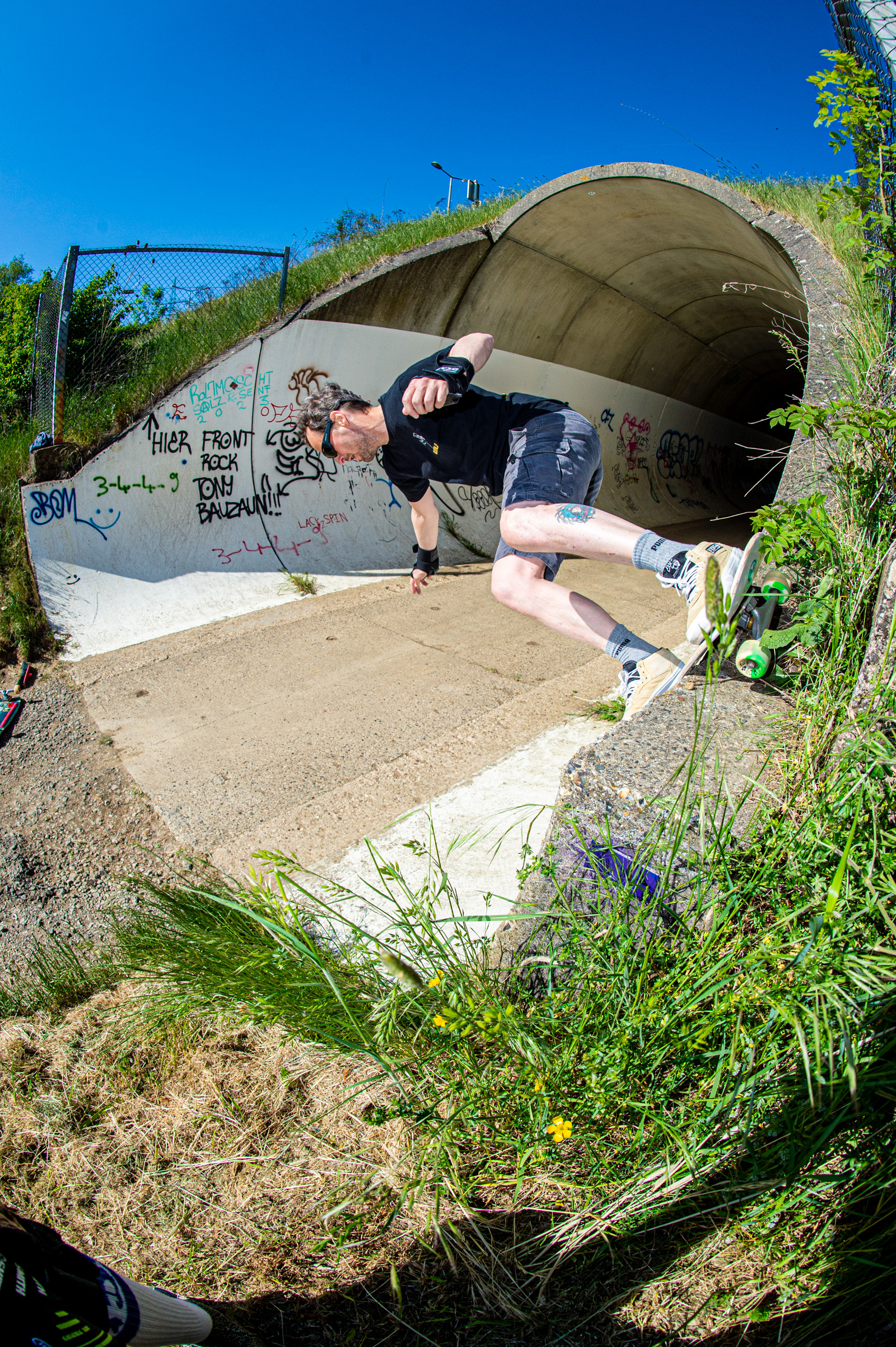 We made a proper pilgrimage across the border to hit some sacred spots, including a few crusty gems just a stone’s throw from where we crawled out into the world. Sessions were shared, souls were stoked, and at the center of it all? Our dear friend and sonic wizard, Dan Luciani—aka Sonic Dan. Luxembourg’s finest drummer, surf-powered stoke machine, and underground skate historian with a nose for lost transitions.