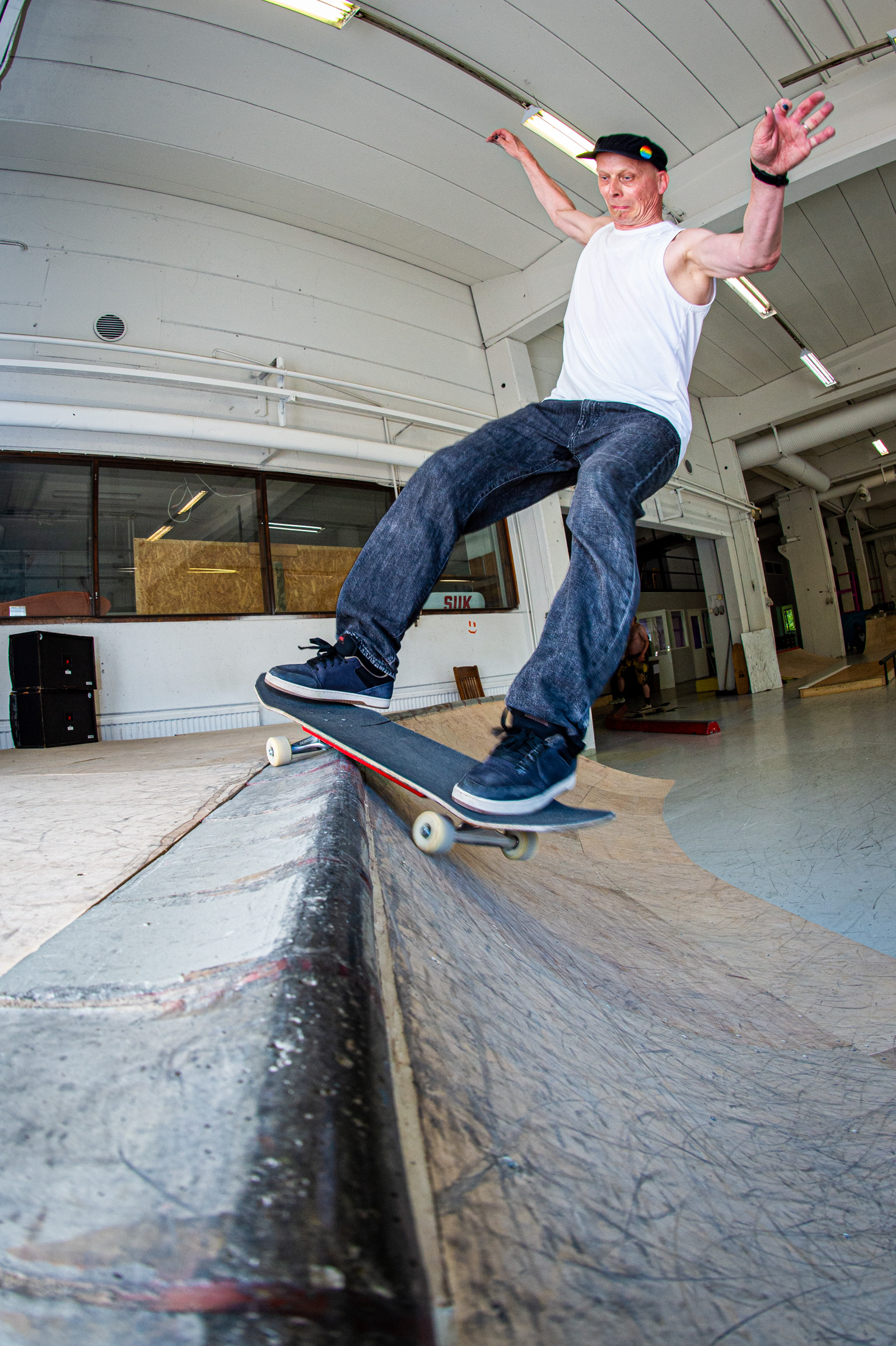 First stop: Muurame DIY indoor park, Murskaamo DIY Skeittihalli. A collective dreamland packed with pool coping, crusty curbs, and a mischievous spine/mini-ramp hybrid. Two hours flew by in a haze of grinds and gratitude, thanks to the park’s super welcoming locals.