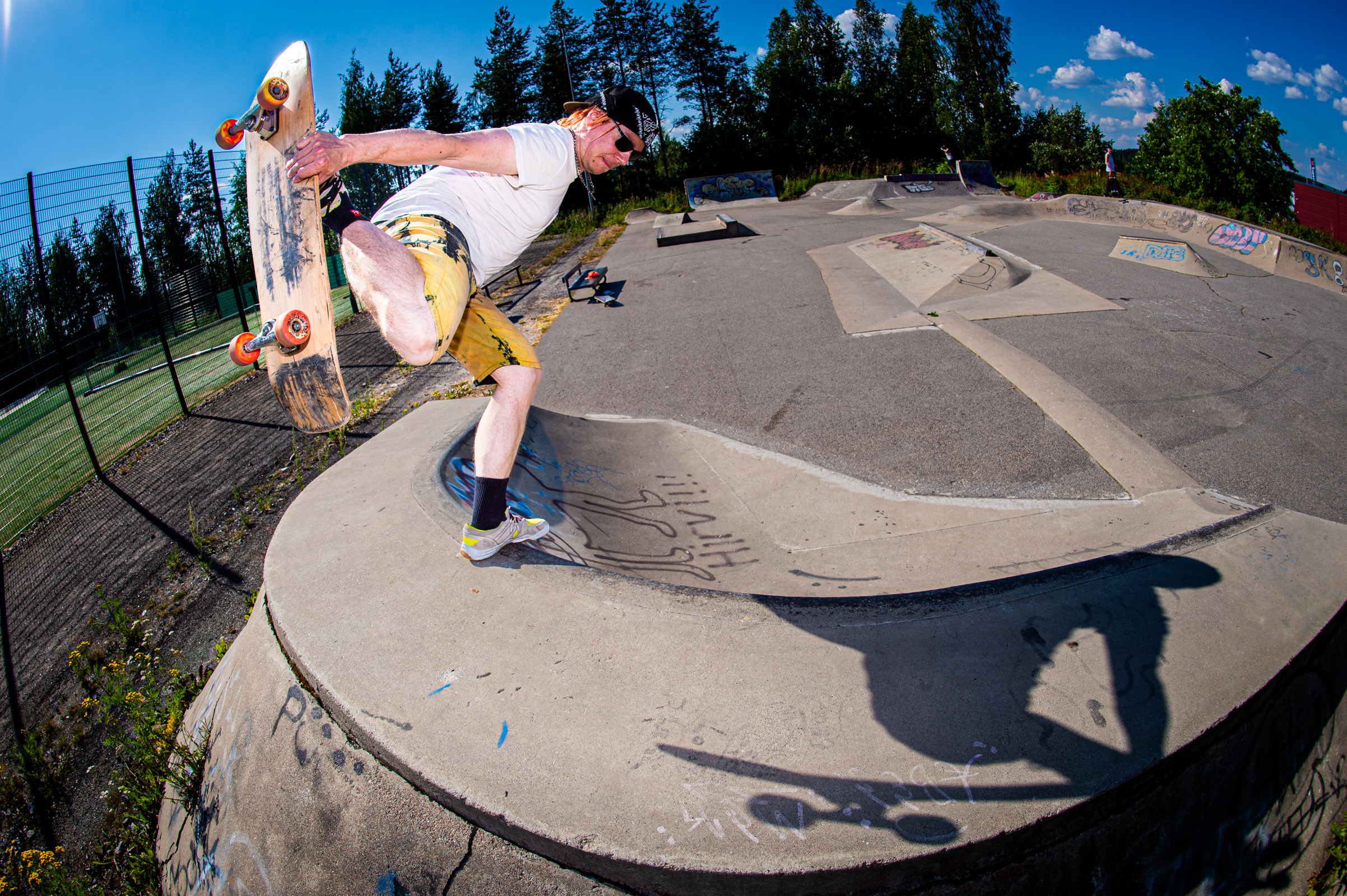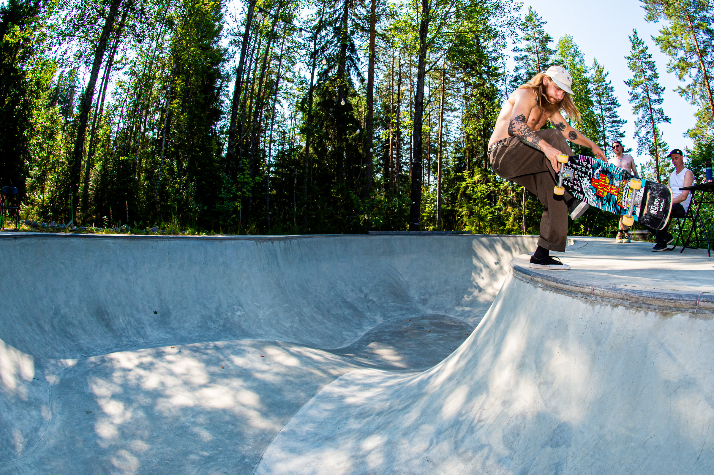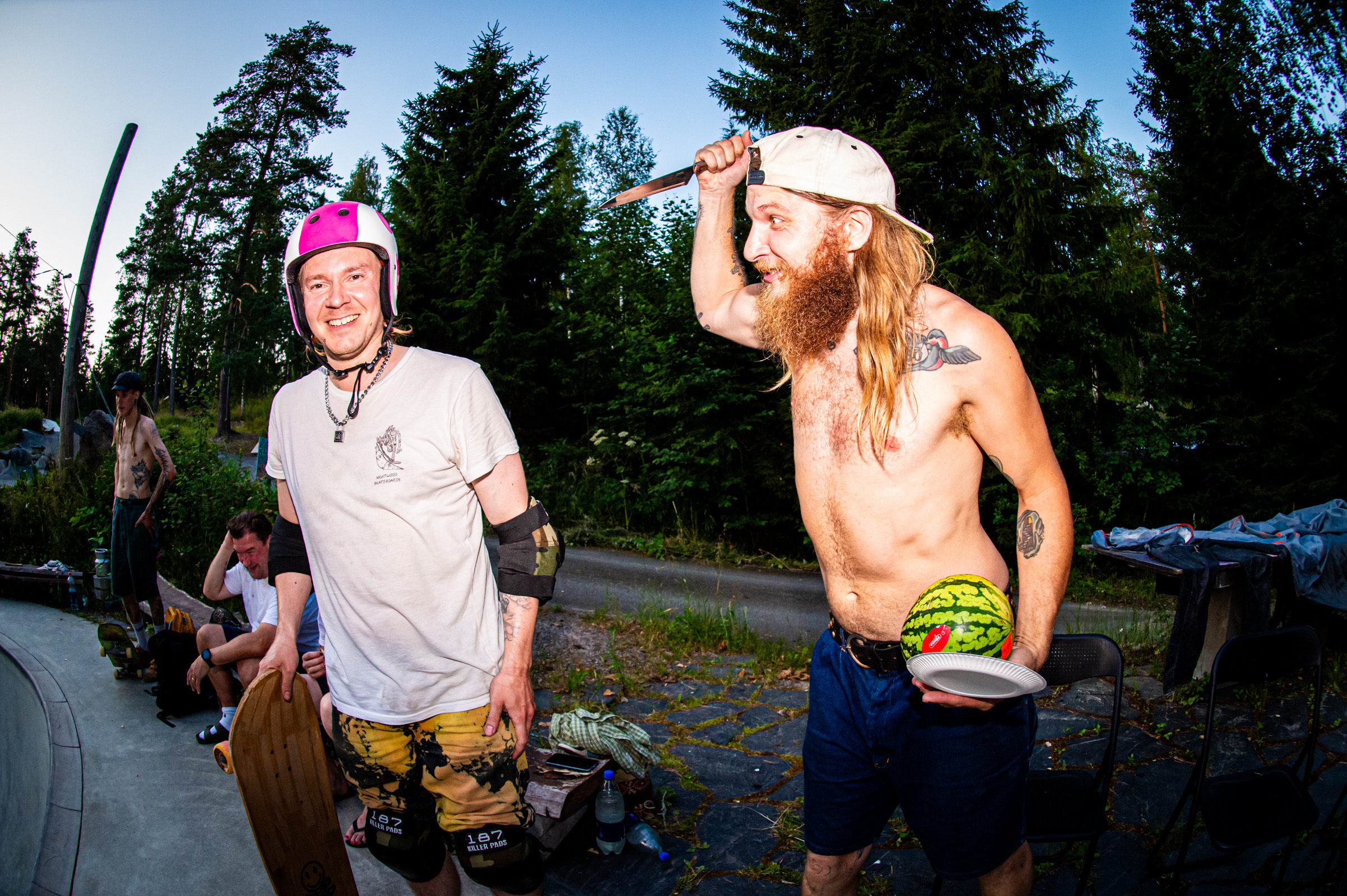After two days of heavy heat, lake dips, and forest walks to rinse off the city static, we bid farewell to our dear Jani Mäkelä and picked up Nightwood’s Kuopio connection—the legendary local ripper Jartsi Heikkinen. With Antti Lampinen in tow, the crew rolled toward Muurame.