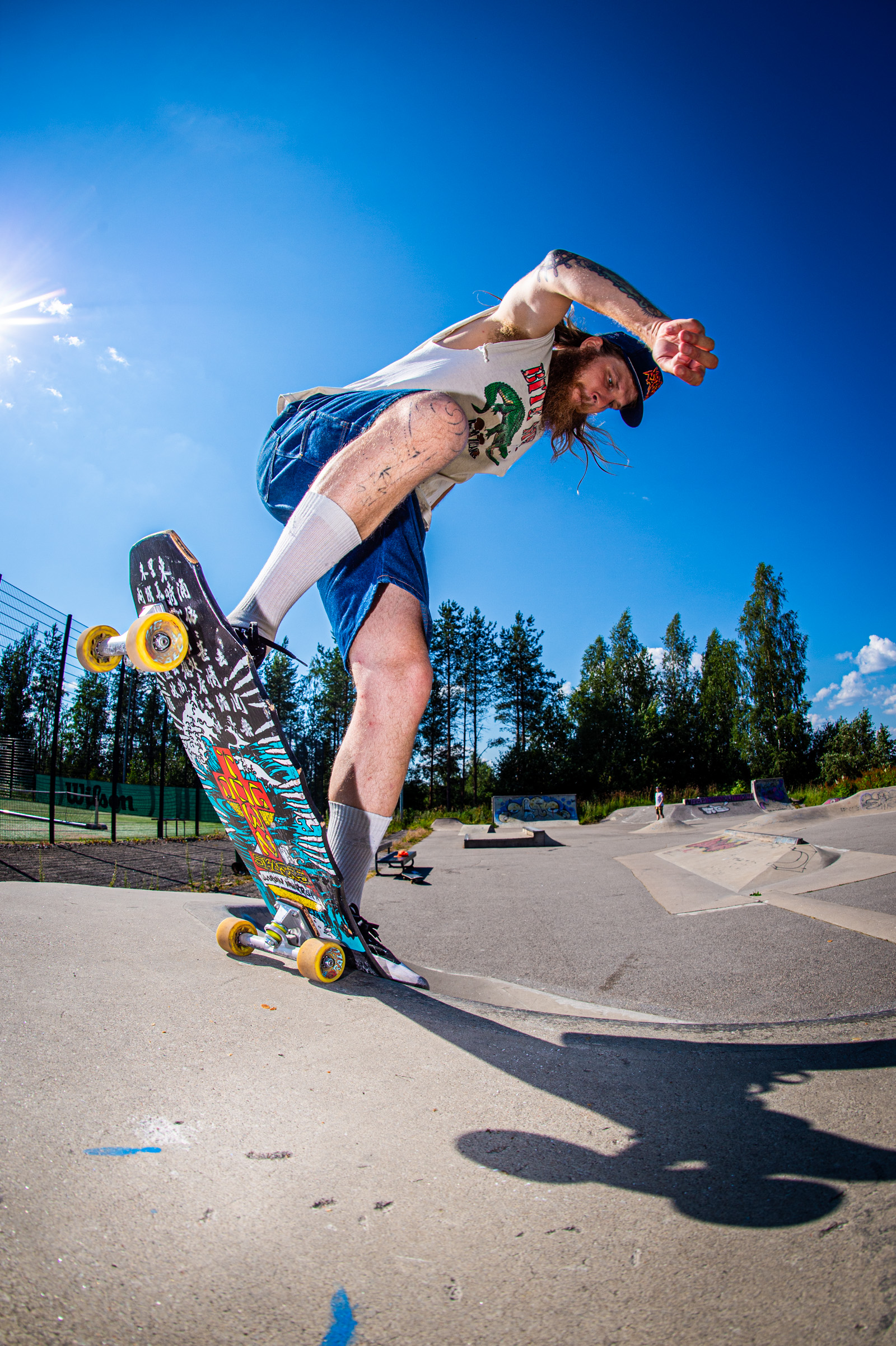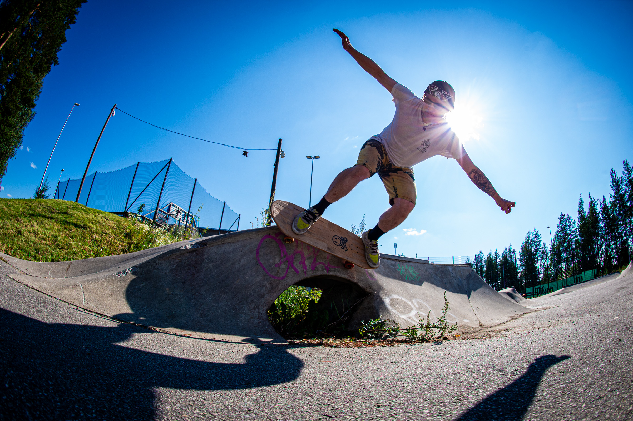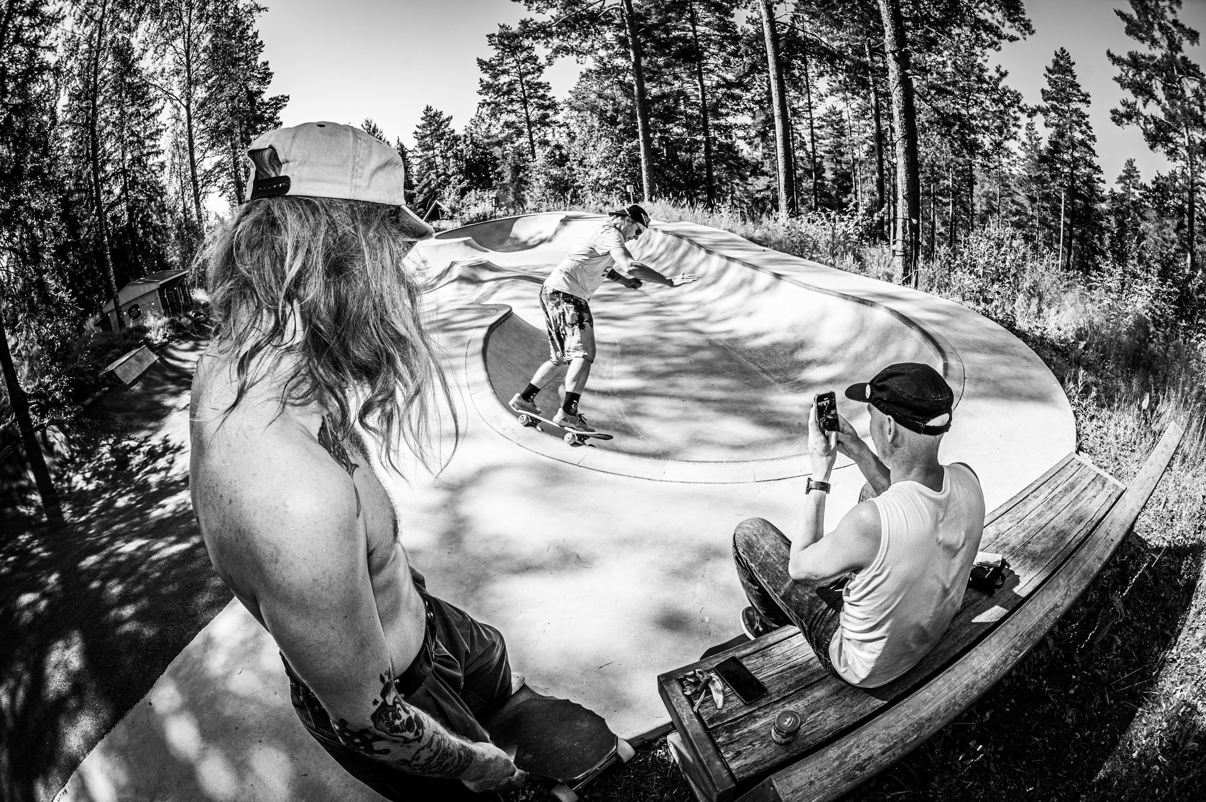 After two days of heavy heat, lake dips, and forest walks to rinse off the city static, we bid farewell to our dear Jani Mäkelä and picked up Nightwood’s Kuopio connection—the legendary local ripper Jartsi Heikkinen. With Antti Lampinen in tow, the crew rolled toward Muurame.