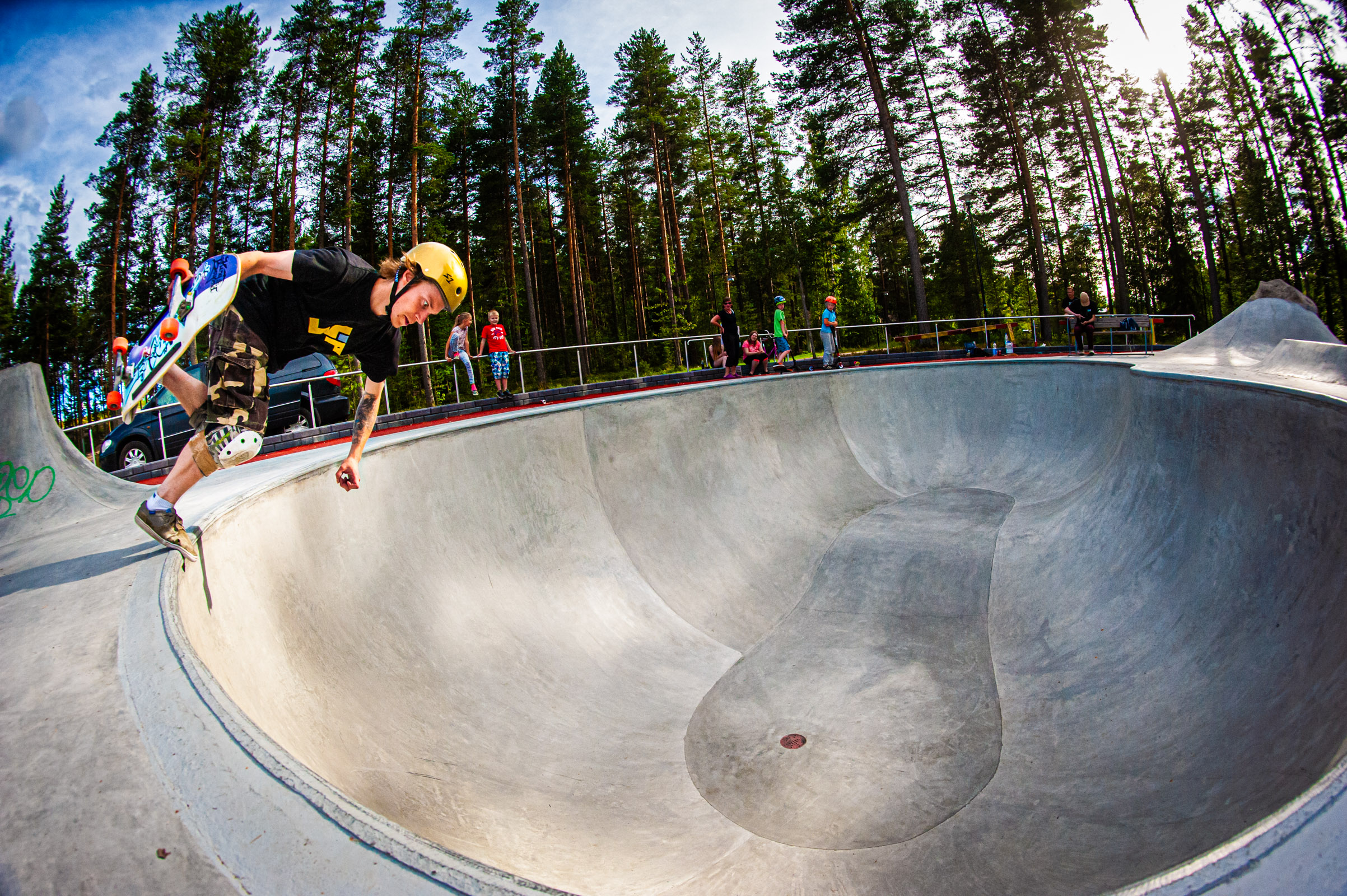 Now, let’s talk about the gnarliest spot I’ve ever shredded: a concrete pool that took nearly a decade to build, nestled on an island near Kuopio. Even today, it’s the stuff of nightmares! It’s so unforgiving that mistakes are not just punished—they’re brutalized (trust me, my shoulder can attest to that).
