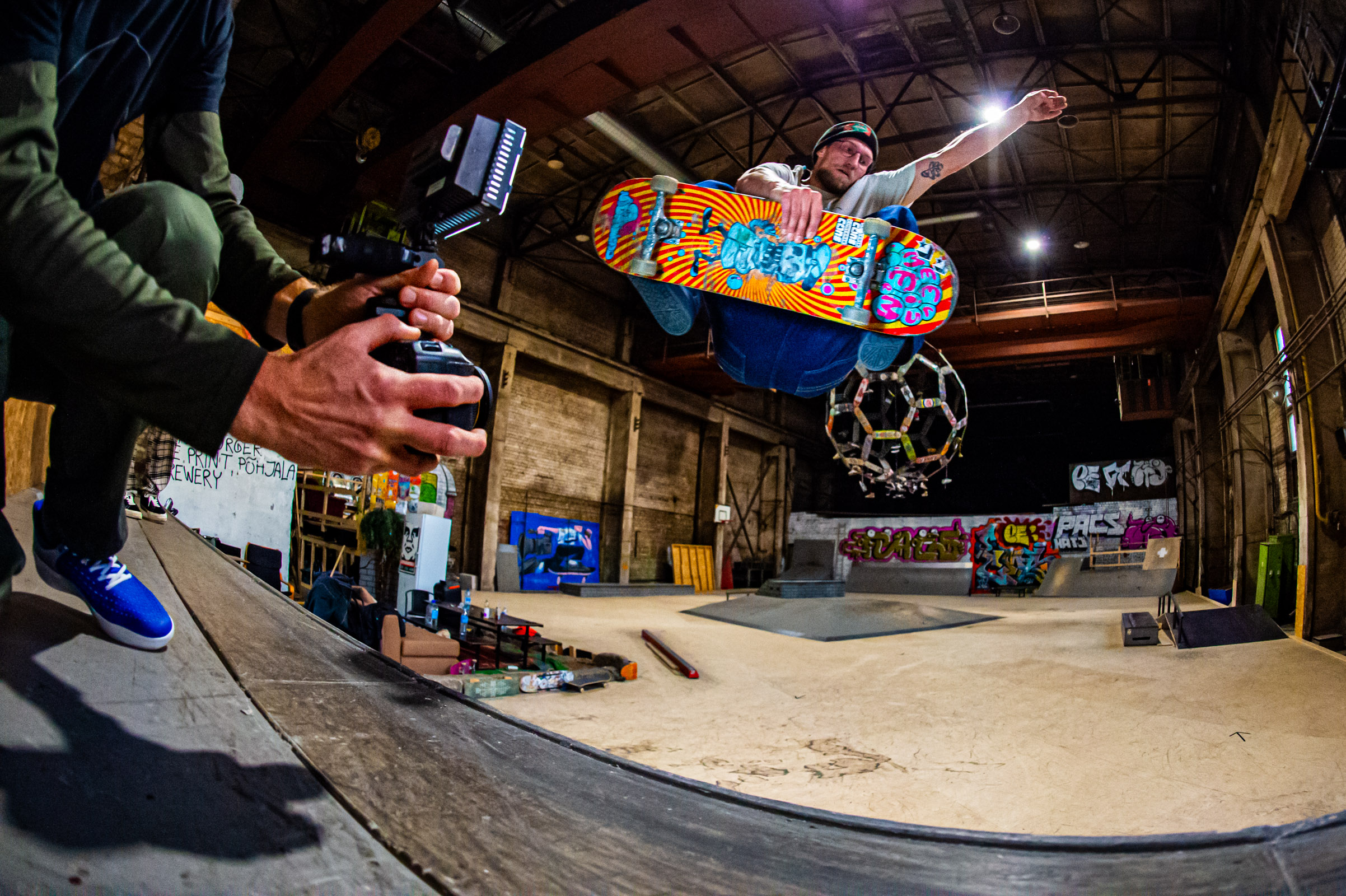 As seen in last week’s session with Johannes Teder, Krulli has become the Nightwood crew’s own plywood jungle gym. You’d expect Meelis to be a little rusty after the break—but forget it. He made Krullipark his own and went ballistic for Lauri’s lens, melting wheels with breakneck speed and soaring high enough to rival JMK, Jaagup’s very own Skate Sphere installation as the park’s resident gravity-defier.