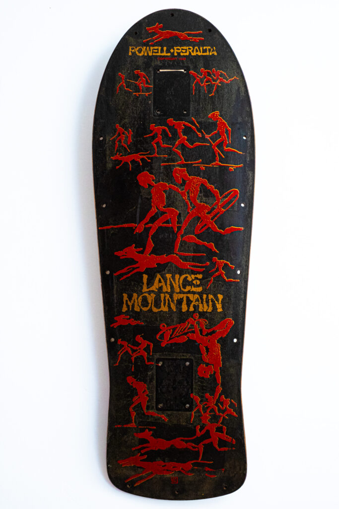 “Lance Mountain—the people’s champ, the king of fun, the guy who made sketchy look stylish. His Future Primitive deck is pure skateboarding history, a time capsule from when sessions were raw, ramps were homemade, and style mattered more than sponsors. That caveman graphic? A perfect fit—because Lance didn’t just ride the wave of ‘80s skating, he defined it. Whether he was blasting backyard airs or goofing off in The Search for Animal Chin, he made every kid believe they could be part of the Bones Brigade. This deck isn’t just wood and paint—it’s a piece of skateboarding’s soul. “