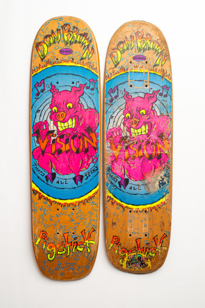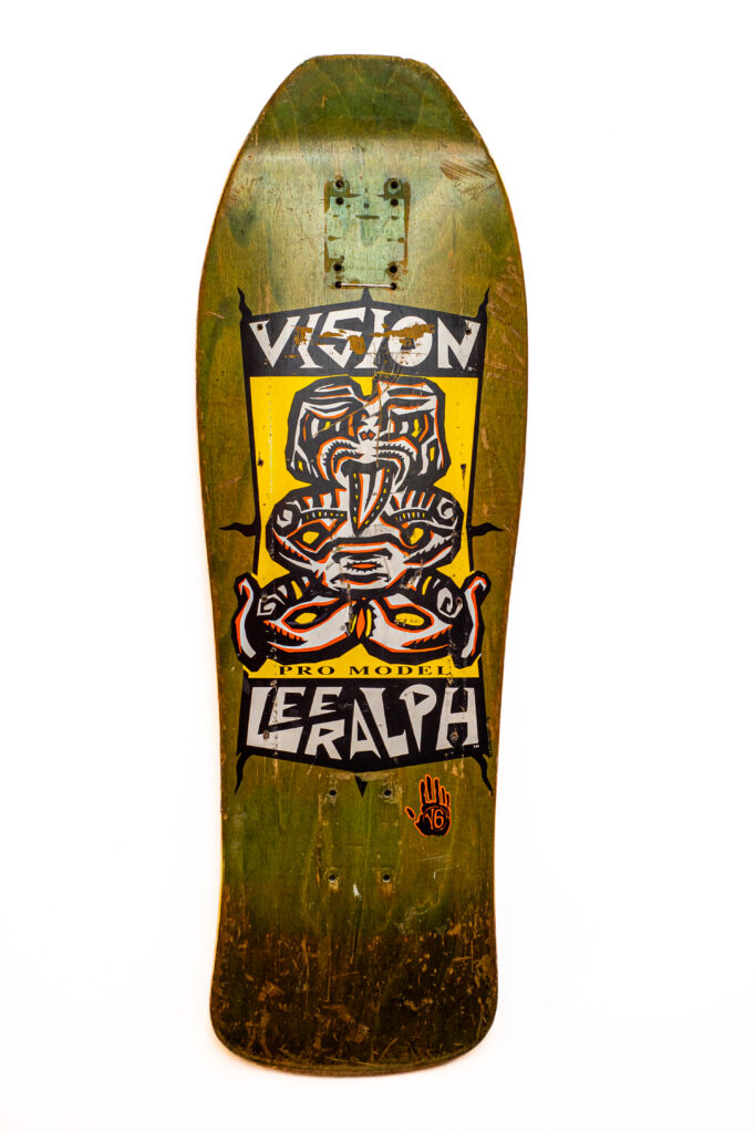 “Straight outta the jungle and into the concrete wilderness—Lee Ralph’s Tiki deck is a raw, mysterious relic from 1990, drenched in tribal psychedelia and Kiwi punk spirit. Vision threw all their paint at the wall, and this one stuck.