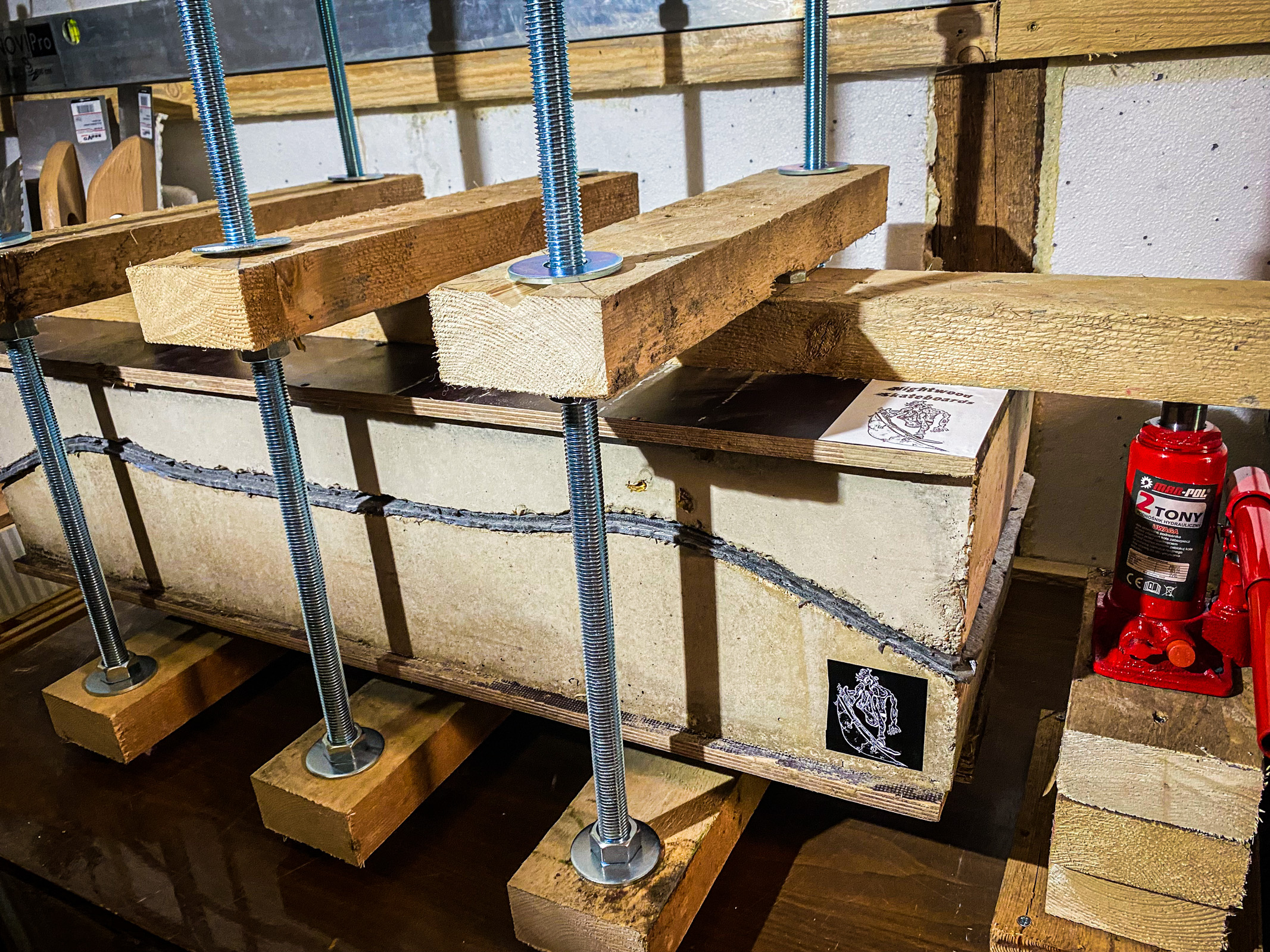 Practicality ain’t its forte, but it gets the job done. Laid hands on Canadian Maple sheets wide enough for 10-inch wonders, plus Titebond III wood glue. Cue the first 2 deck presses: a low-pressure one and a sweat-drenched, muscle-fueled counterpart.