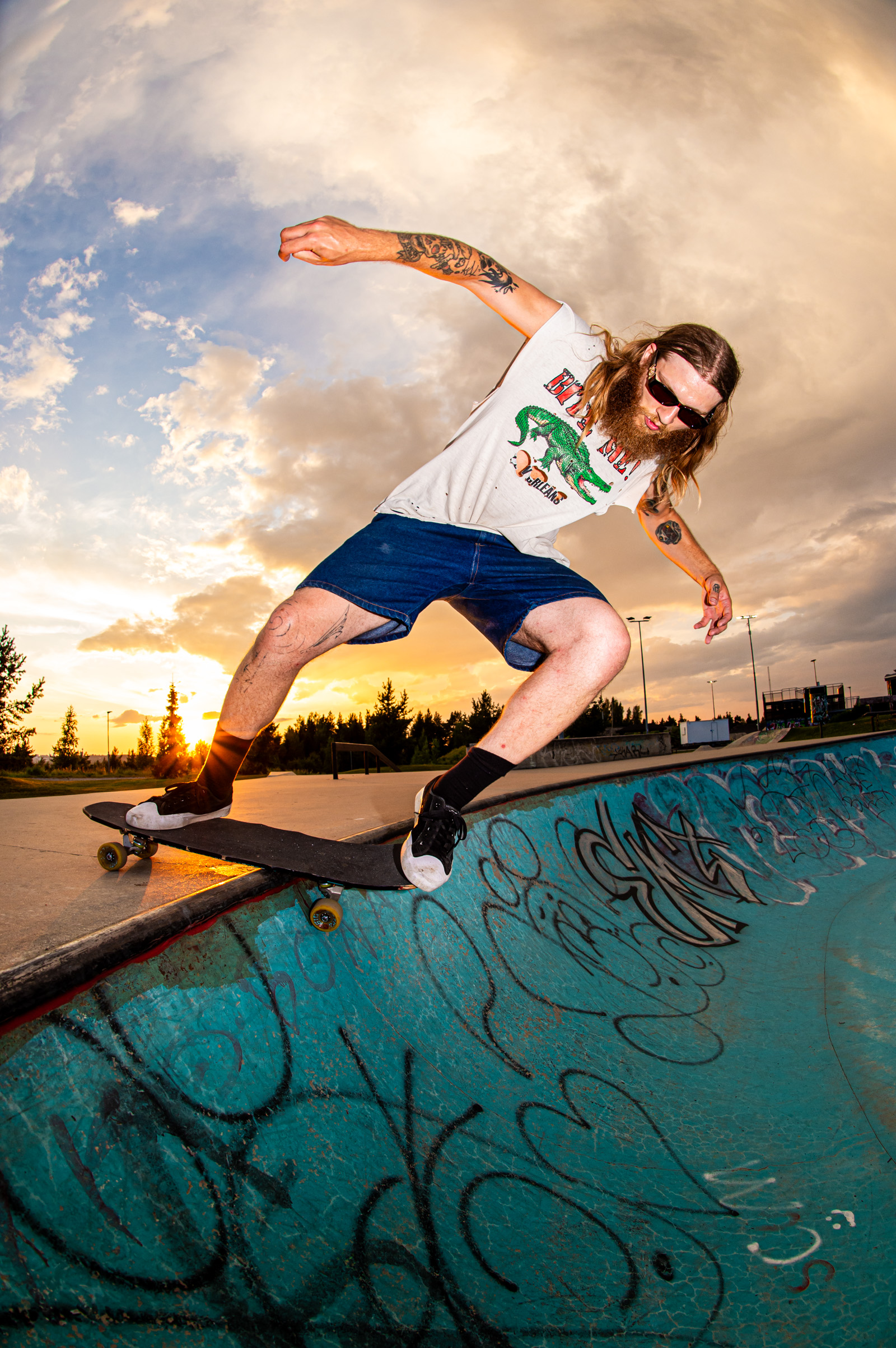 With a surreal sunset blazing behind him, Jaagup Mägi is pure rock ‘n’ roll on wheels—flames in the sky, fire in the soul.