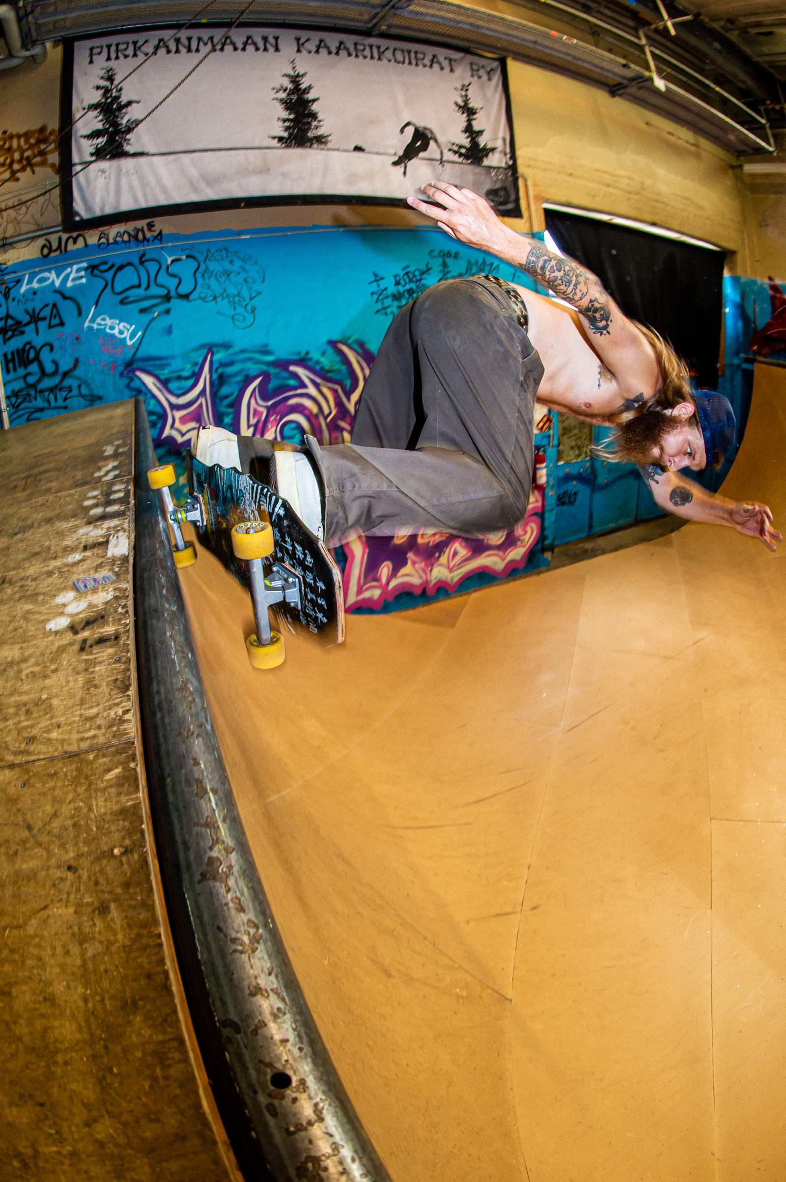 Enter the cavalry: Tuomas Laitinen and Kimmo. Locals, warriors, kindred spirits. The session got hot, fast, and borderline religious. That bowl? A swirling vortex of speed and violence. Smooth like satin, deep like a philosophy degree, and unforgiving like a tax audit. Finnish concrete doesn’t lie.