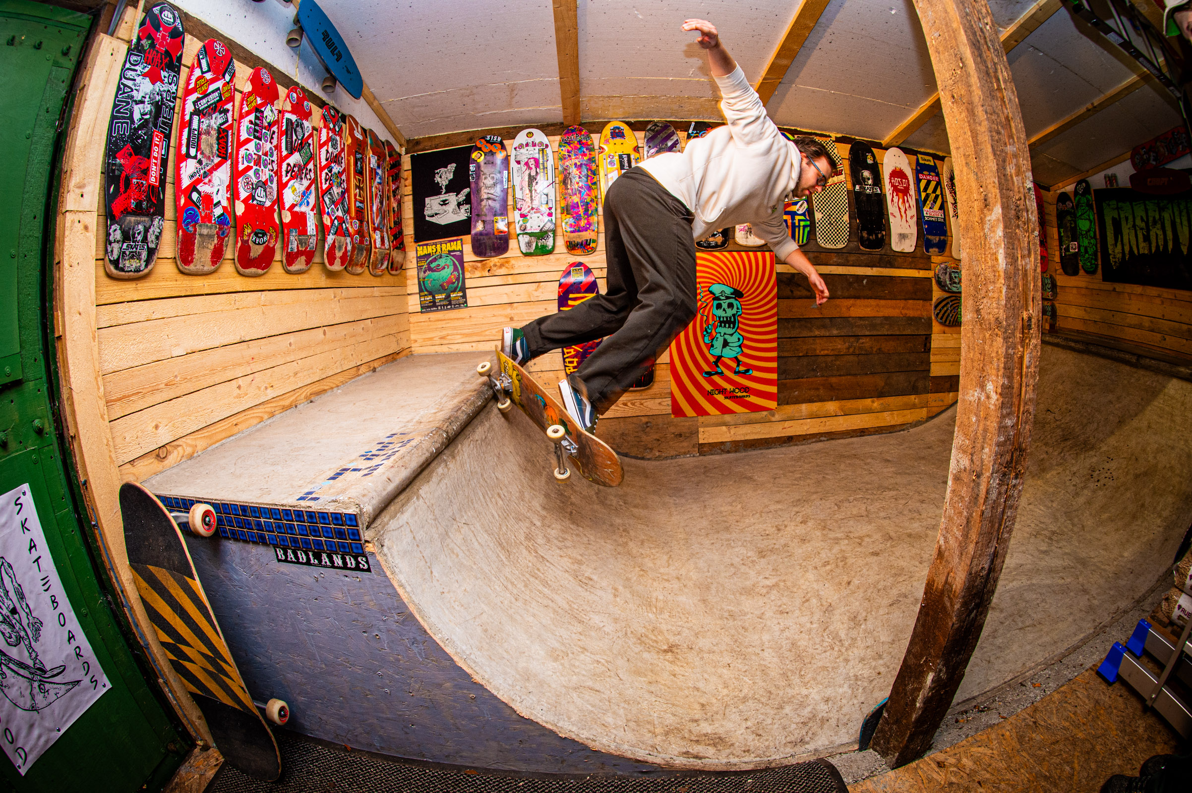 Here’s a taste of the chaos from a session at the infamous Nightwood mini-ramp, deep in the guts of Shop HQ. Jaagup Mägi and Henri Berendsen showed up ready to shred or die trying. The ramp’s a snarling beast, the coping’s got teeth, and every carve felt like dodging death with a grin.