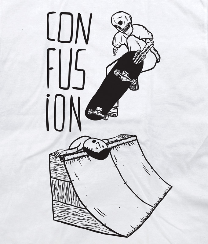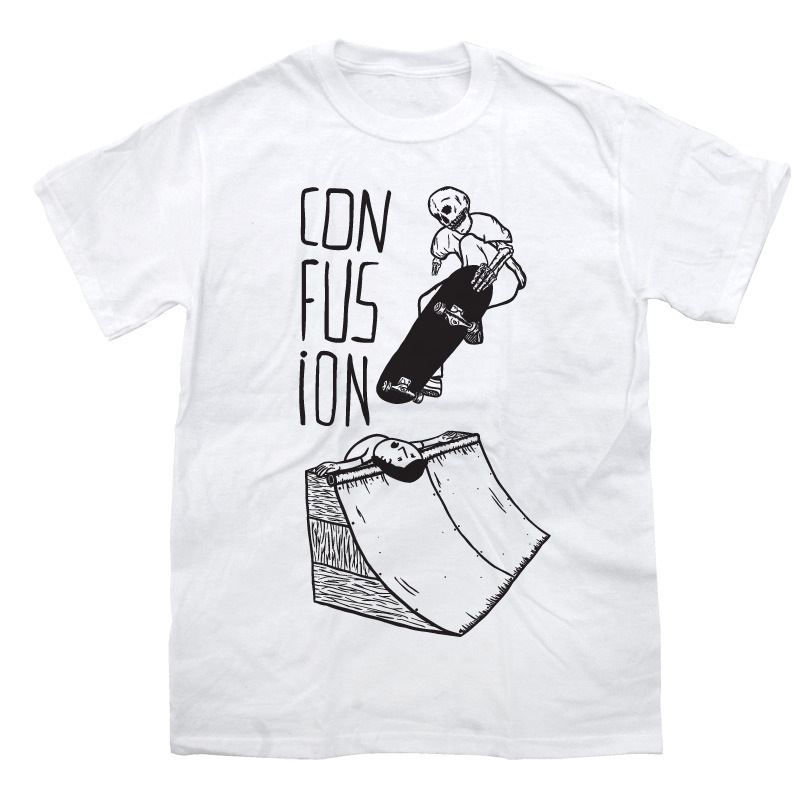 Confusion Magazine – “Sacrifice” tee. Confusion NOS old stock with Confusion lettering, collectors your time is now, don’t miss your chance to get one! Black ink screen printed on front of white heavy weight 100% cotton t-shirt Artwork by @wizardskull