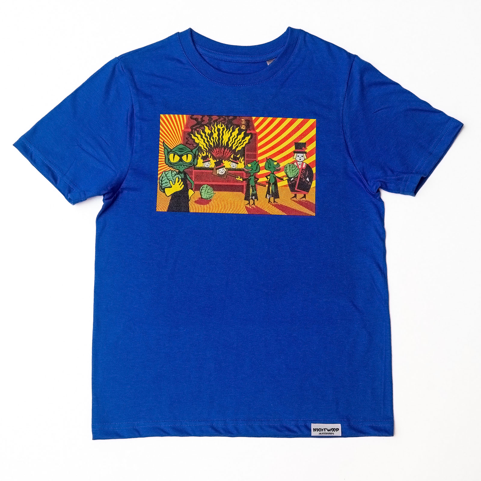 Nightwood “Meelis Erm” T-shirt Blue. Kid Size 5-6 years, 110-116cm Kid Size 7-8 years, 122-128cm. Kid Size 9-11 years, 134-146cm 100% Cotton with Nightwood tag on the bottom left. Graphics by local Maik Grüner !