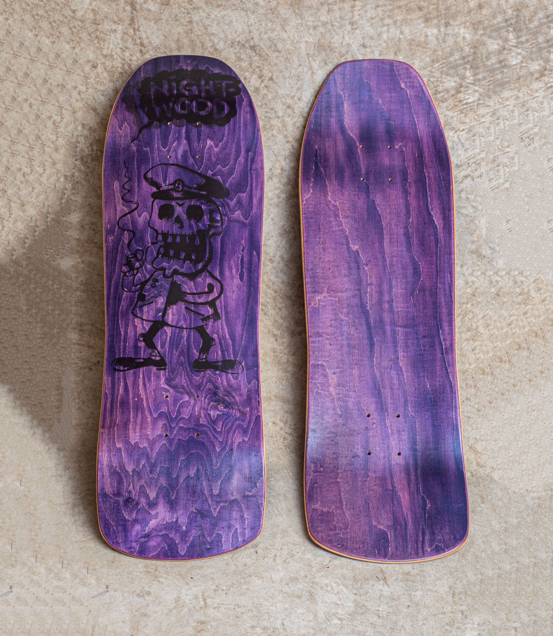 Nightwood Skateboards Sailor DIY style deck. Designed by Maik Grüner. Manufactured in Poland by Locals Skateboards. Screened in Tallinn by Trykiruum. Old school shape deck 9.25’/31.125