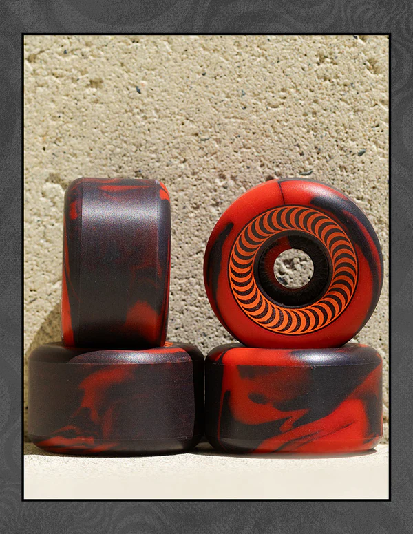 Spitfire Wheels – F4 99A OG Classics Red/Black Swirl 54mm 54mm Black/Red Swirl Color 99a Durometer Formula Four F4 Spitfire’s original cut-away shape. Features a wider riding surface shape. More controllable grip. Set of four.