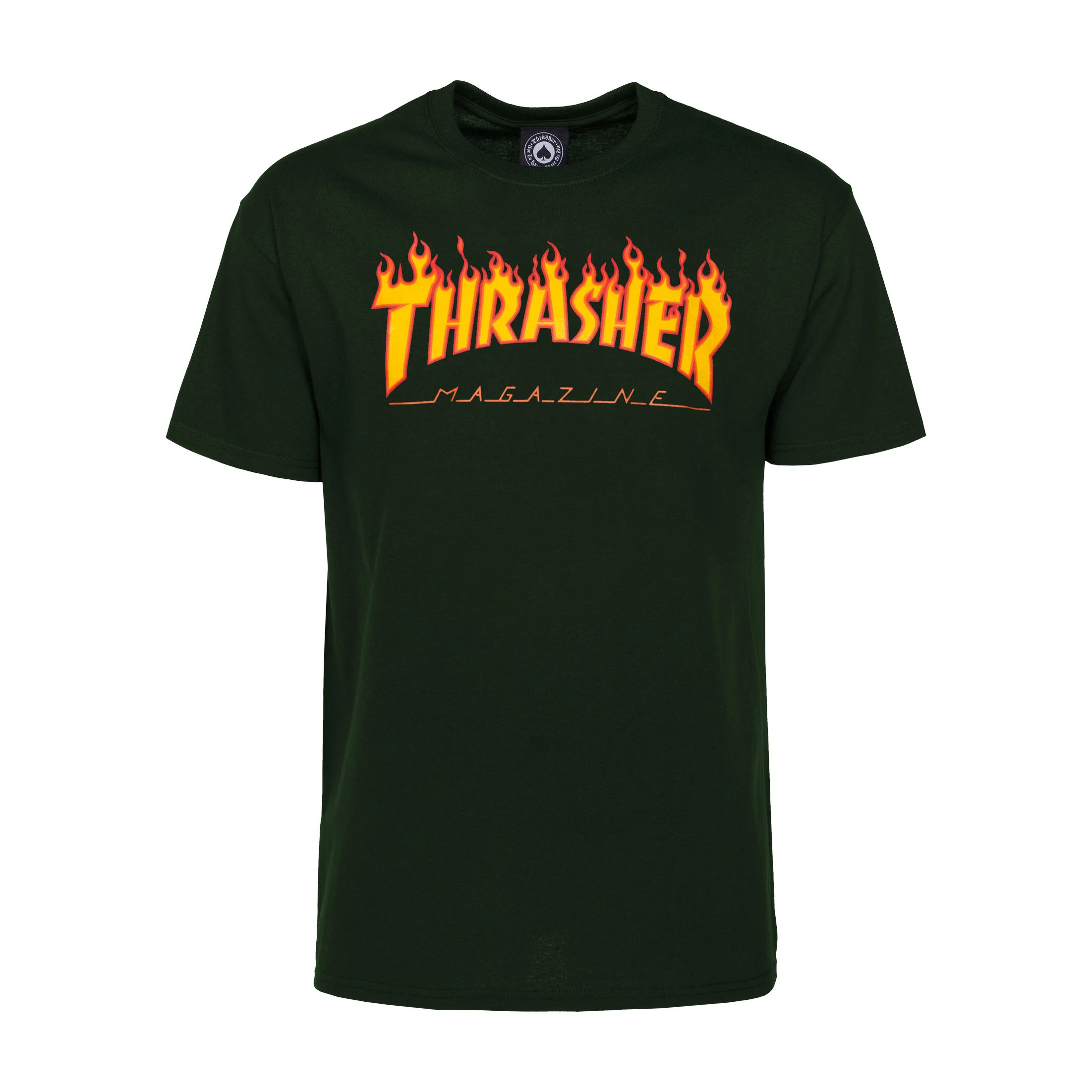 Thrasher T-shirt Flame Forest Green Size S Standard fit T-shirt woven from cotton, finished with artwork at center-chest and sewn-in label at inner neck. 100% Pre-shrunk cotton.