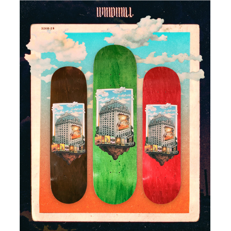 Windmill 8.4″ deck. Wheelbase 14.25”. Graphics by Jussi Pohjanen.