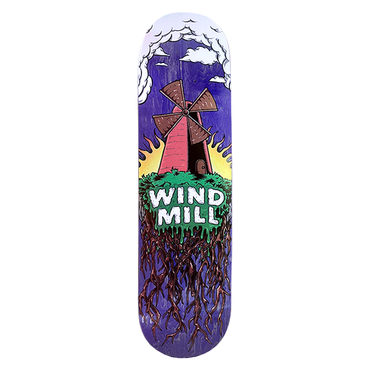 Windmill 8.4″ deck. Wheelbase 14.25”. Graphics by Jussi Pohjanen.